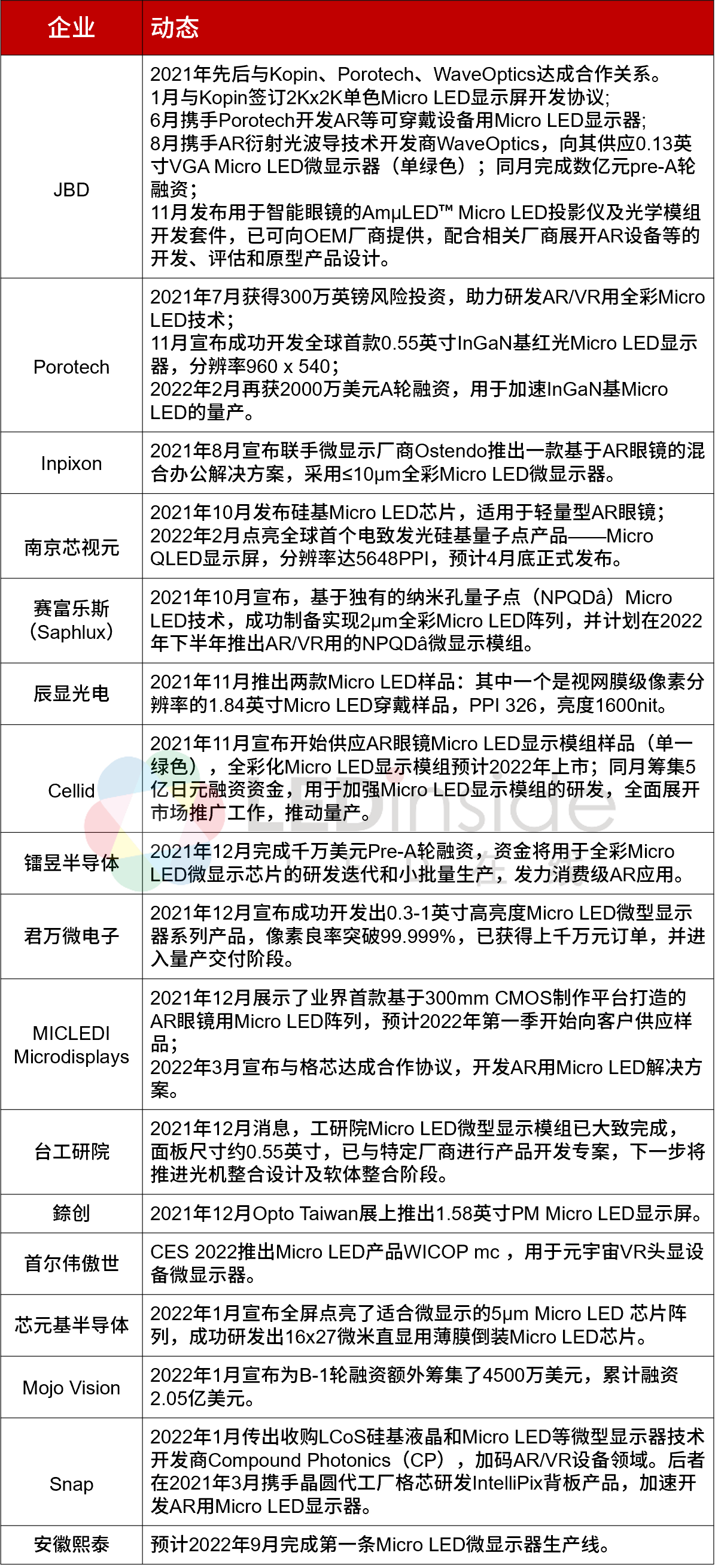 据LEDinside了解,2021年下半年以来,部分Micro LED显现相关企业动态如下: