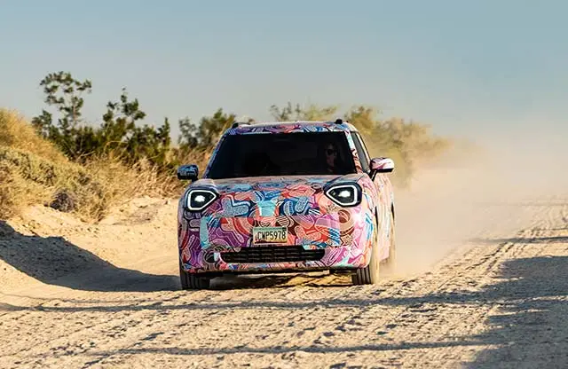 在批量生产过程中,新车型现在必须在沙漠公路的极高温度下证明自己的功用。MINI Aceman 的长度为 4,075 毫米,宽度为 1,754 毫米,高度为 1,495 毫米,介于 MINI Cooper 和 MINI Countryman 之间。全新全电动 MINI 系列中的第三款独立车型装备四门和一个大尾门。其内部可包容五名乘客。